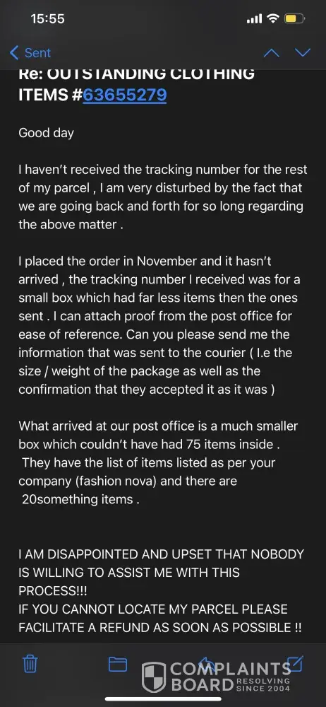 18th of February, I have sent numerous emails regarding my outstanding clothing items that were purchased on the 27th of November 2020 to no avail.