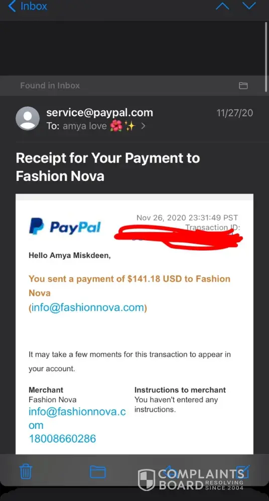 I had ordered some clothes on Black friday (Nov 29, 2020) from their website FashionNovamen.