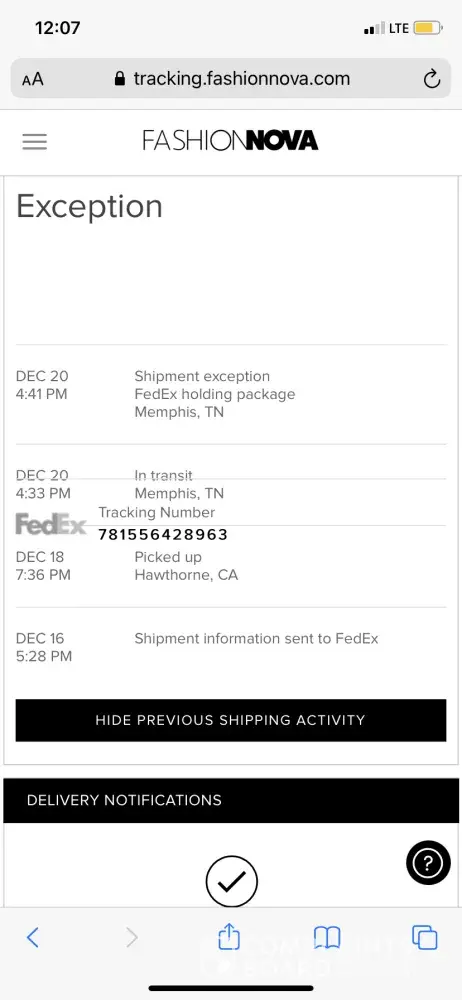 I ordered a jacket from fashion nova a little bit over a month ago and it's been saying that it's been delayed for the last 3 weeks every time I check on the tracking number which i...