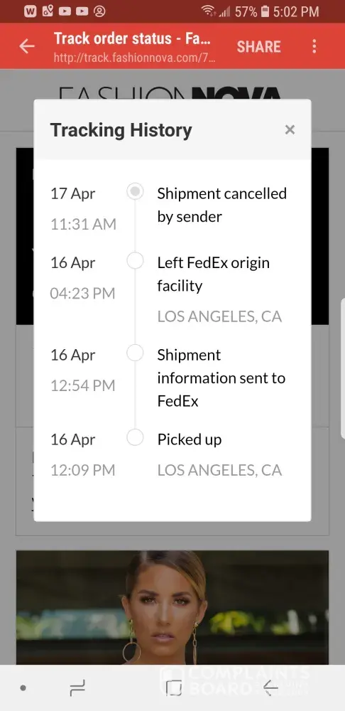 I placed an order 4/16/2018 before noon with 2 day shipping. My account has cleared for the payment to Fashion Nova, have contacted them several times through e-mail and phone. From what I'm reading through the comments is that they have no obligation to their customers. This leaves a sour taste in my mouth for their marketing seems to promise other wise. I don't even care where my order is at this point and no need for store credit, what I'm more angry with is the lack in customer care.