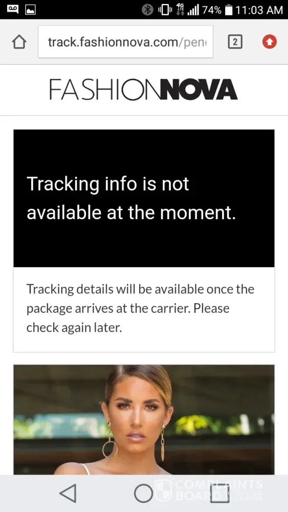 I purchased a dress from Fashion Nova for the very first time on the 17th of April with the 2 day shipping got a confirmation email for my purchase checked my tracking info through the email and it says ordered checked my tracking through their website its says no tracking info available here it is today the 21st and no item delivered yet sent an email now waiting for them to get back to me