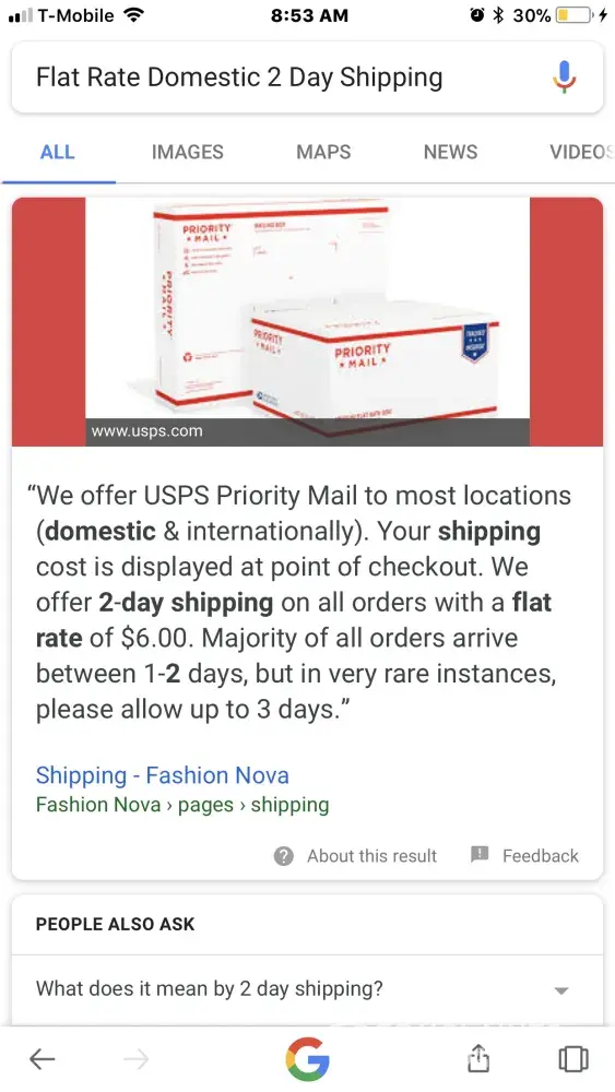 Good morning I still have not gotten my order! It shipped on the 2nd of Jan I had 2 day free shipping and yet I still have not gotten my order! This is completely unprofessional and ridiculous! My order was a guarantee 2 day shipping which means you will receive the order once it's SHIPPED in 2days! I had high hopes for Fashion Nova but now I don't like you guys! You lie to your customers and when we reach out to customer service via email no one replies it's a automatic system who respond with the same response every time! Not to mention contacting customer service no one answers and if your holding to speak with a rep it hangs up on you after maybe 5-10 mins of holding. This is unacceptable. Especially because I spent my money with your guys and I have no way of PSYCHICally speaking with a live person! I received a email saying my order was shipped once shipped I would receive within 2-3 business days the delivery date scheduled for Jan 5th and no delivery check tracking says my order is in TN as of Jan5th at 9:30pm! So now no updates delivery date no nothing! What the hell is going on! I really honestly don't want to ever order from you guys again! You're liars and you lie to your customers, not good reliable customer service, which by the way if you don't have GOOD CUSTOMER service you're company will not last long! I am requesting a refund for not receiving my items as guaranteed shipping on 5th of Jan! Due to me placing my order with a gift card I would like a refund of my gift card and I'll take my money to a different company who's going to get my items on time and we are trustworthy! [censor] you Fashion move! I will be leaving a bad review . I have attached their shipment policy for 2 days shipping! Plus their customer never that you'll never get to anyone at!