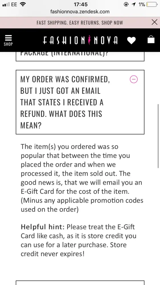 Fashion Nova is currently trying to scam me. I purchased two items and they said it had been shipped. A week later I got the stupid gift card saying my items had been successfully returned. When they finally got in contact with me they said it's because they can't ship to my address? (New Zealand). What use is a gift card if I can't ship anything to my address? They also didn't refund my shipping! I want my money in my account!