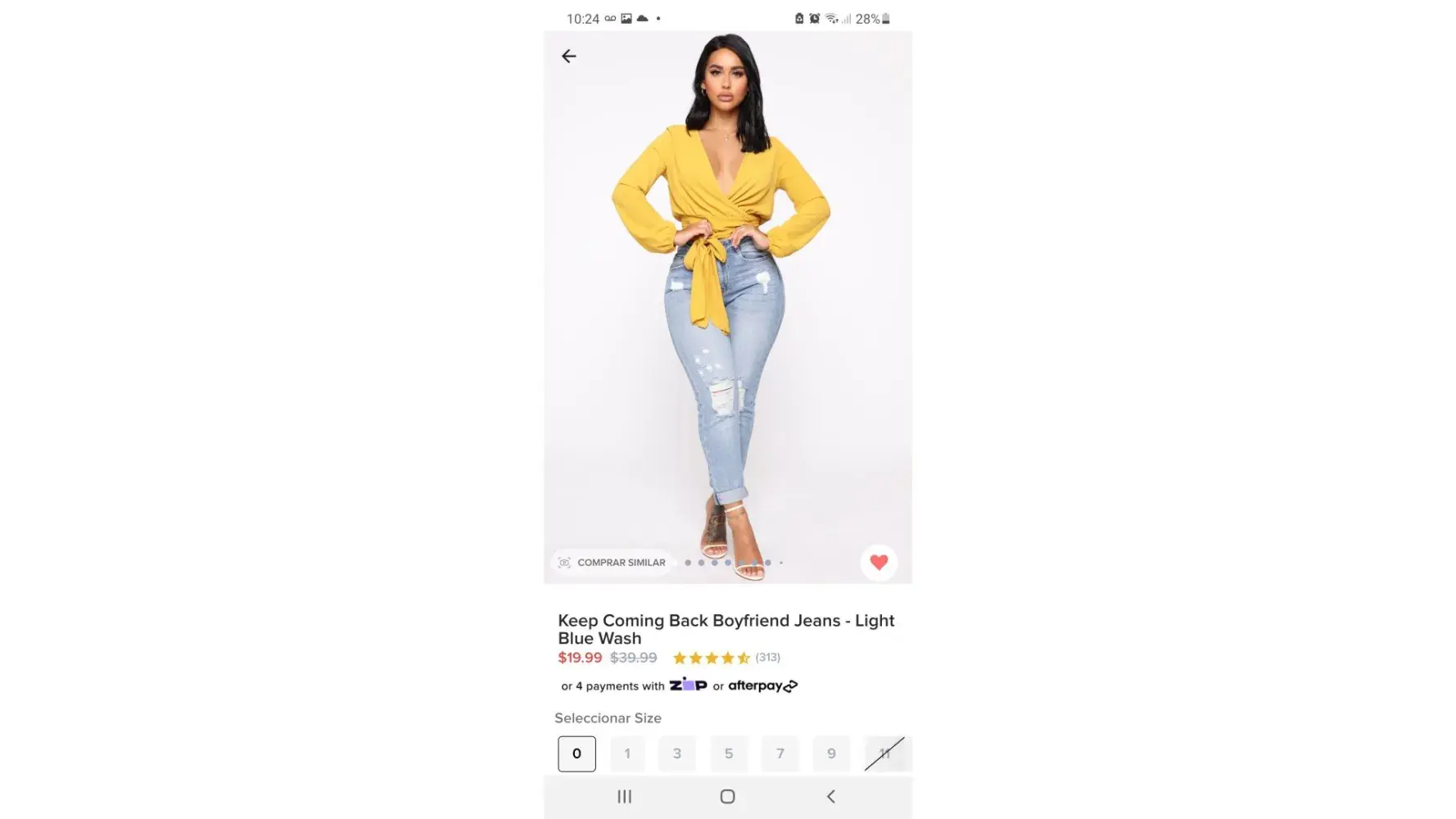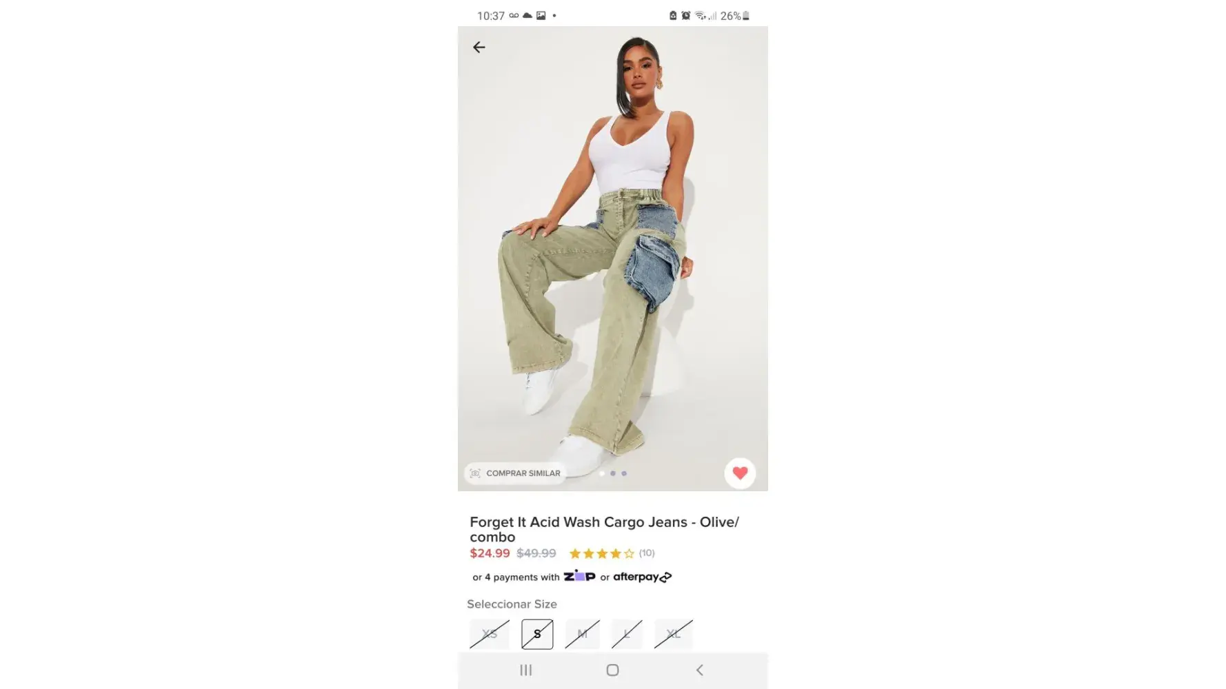 Desired outcome: Desearía el pantalón en el saize