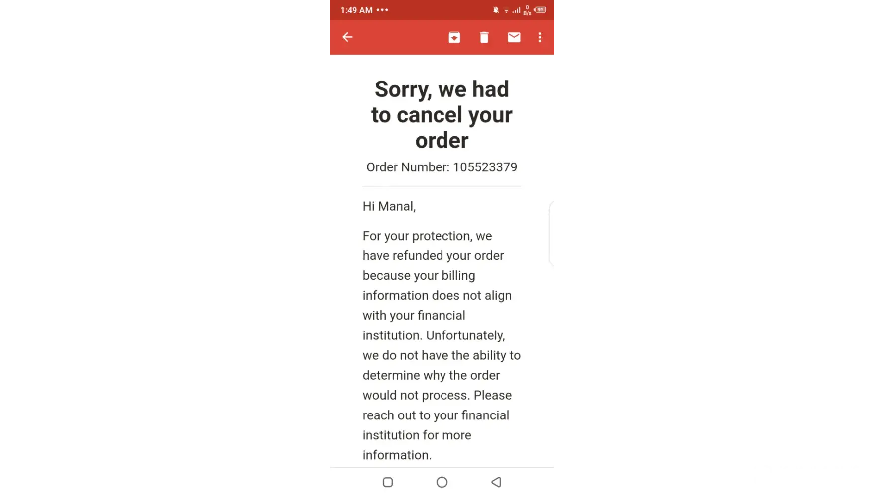 Fashion Nova My order has been cancelled