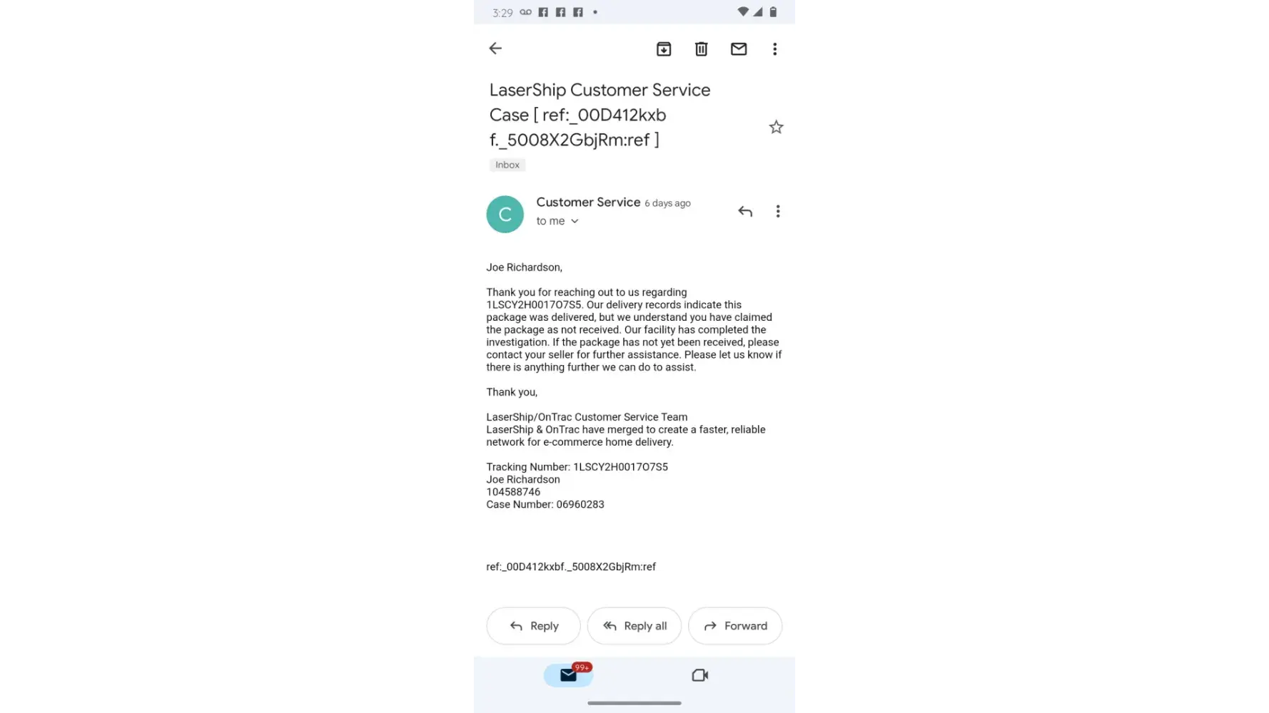 This leads me to believe that the carrier either left my package unsecured, resulting in theft, or my package was not delivered at all.