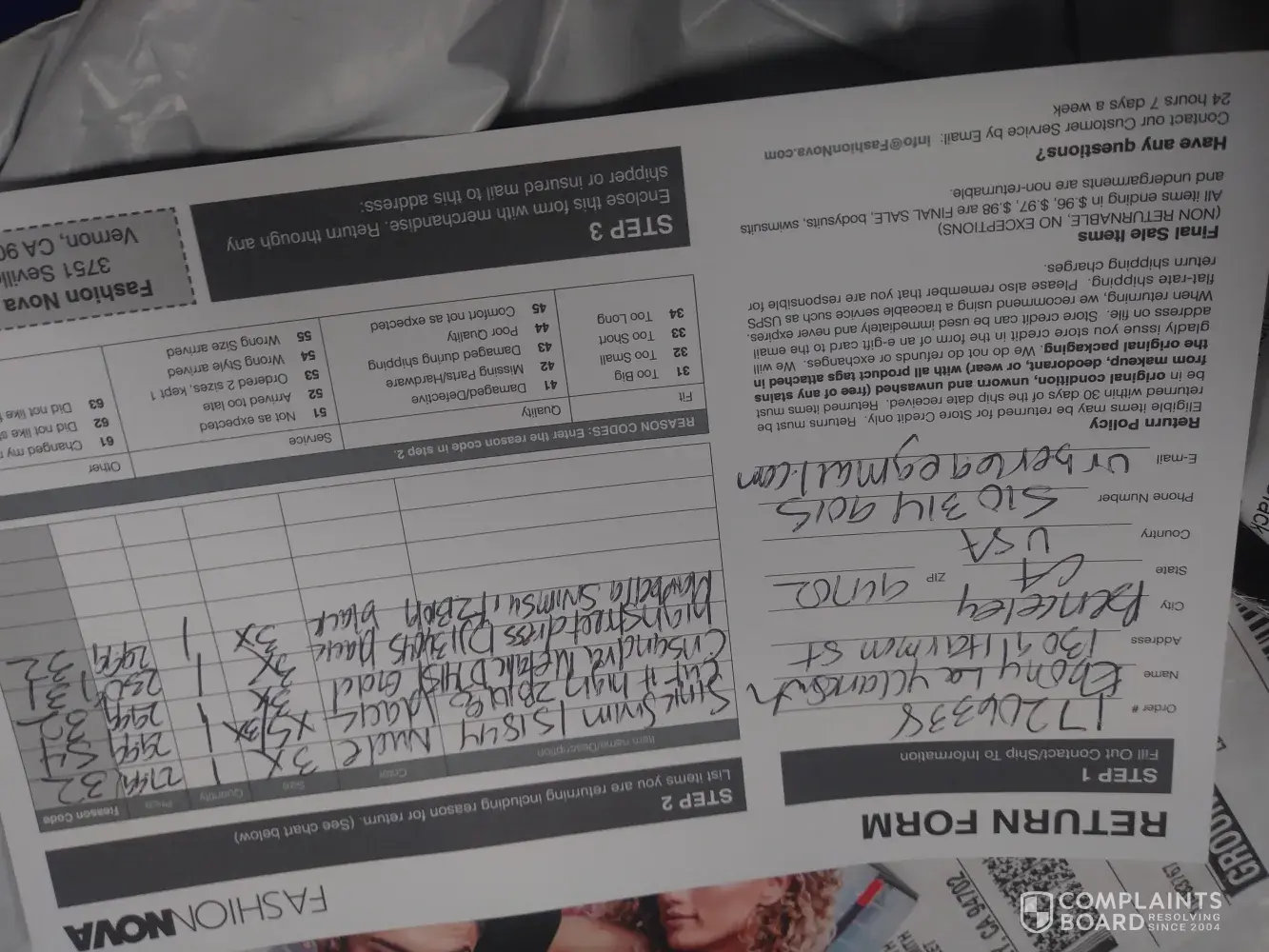 I have ordered from Fashion Nova before with NO issues, but this last time i ordered from them and they sent me ALL the wrong items. I emailed them and I got a message saying I would here from them within 24 hours. I haven't heard anything so I called their customer service line and no one picks up. When i went back online, I saw that most of the items were sold out now so I probably won't even get my stuff now.