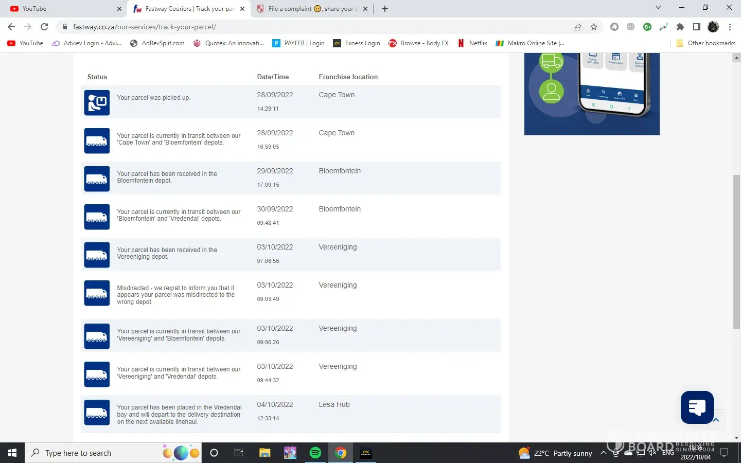 This company took 1 week to send my parcel all over South Africa. It went from Cape Town to Bloemfontein, then it went to Vereeniging and now only God knows exactly where my parcel is. 1 week? I stay 250km from Cape Town / 2 - 3 hours drive from Cape Town. 1 week?