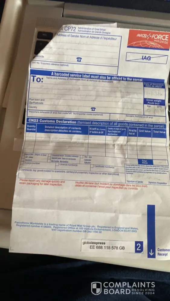 I paid almost £60 for an envelope containing legal documents which I cannot easily replace to be sent to Cyprus (from London) via 3 day delivery. This was done by me on 20th May. It is now 27 May and the parcel has not been received. I sent this via Parcel Force with the tracking number: