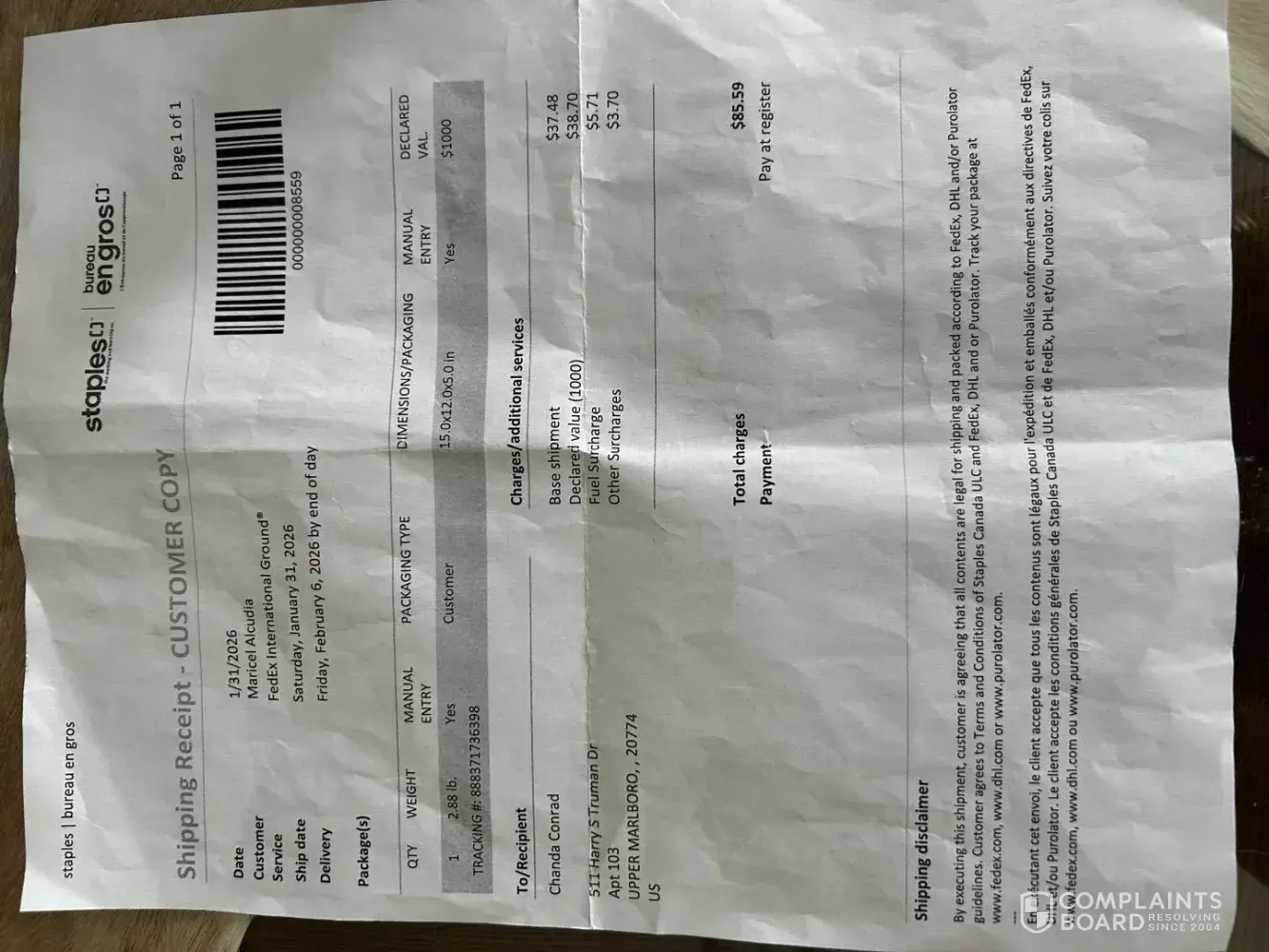 Read full complaint and 2 commentsDelivery
