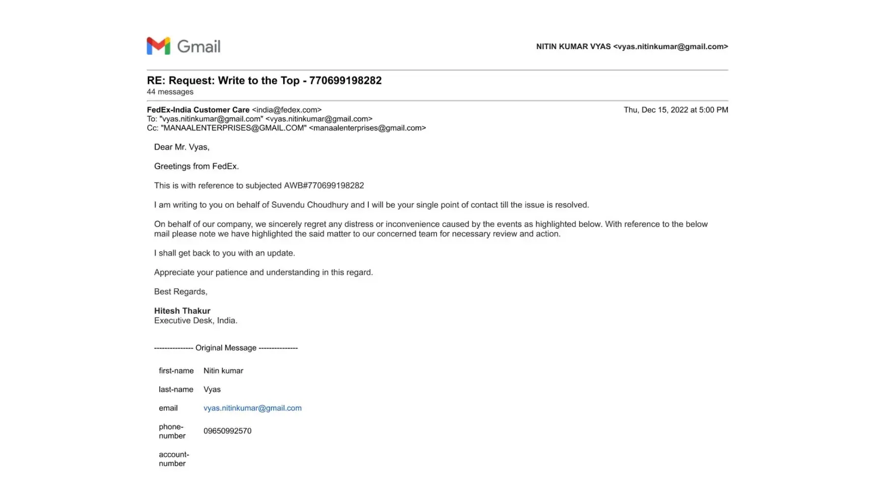 Around this time, I was told that a case was being opened and that I would be contacted that afternoon by a case handler that would assist in finding my package — I never got a call back. I got an two emails two days later saying my case had been opened and closed. No one contacted me and I still had no idea what the outcome was with my package.