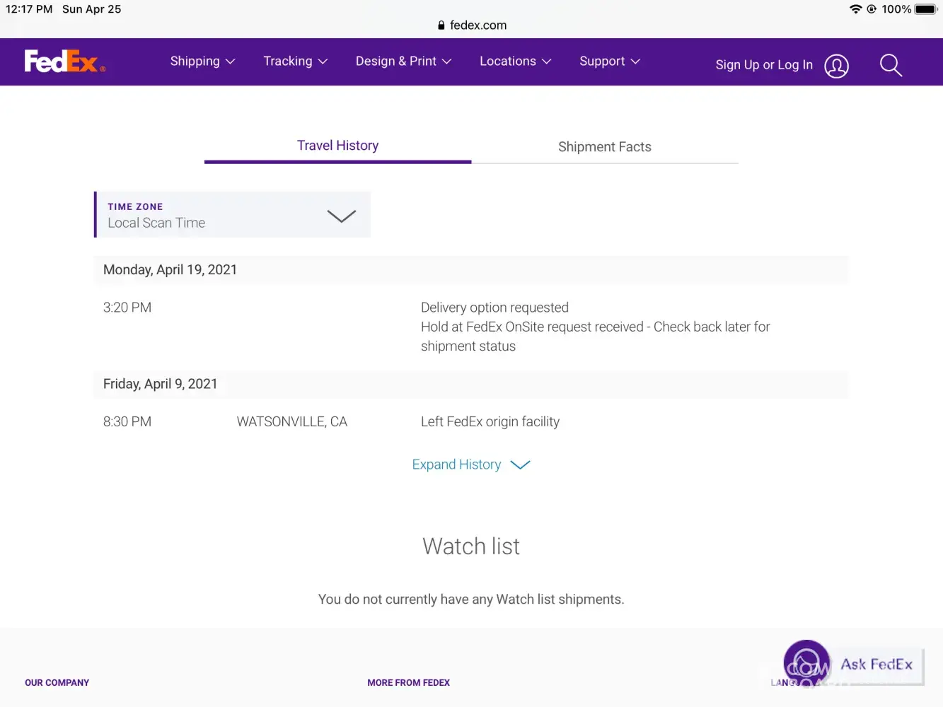 I attempted to contact FedEx again and received a final noticed (Package Delivered on April 11-2021)