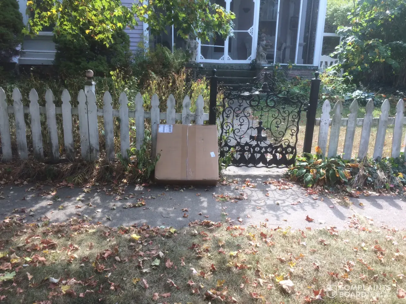 (3) Today, 09/027/2017, the driver threw the package over the fence and did NOT use the South Oak Street gate. The package is clearly visible from the street and subject to theft.