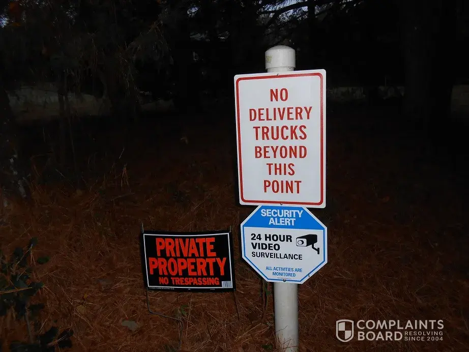 While reviewing my exterior cameras I noticed that a FedEx truck dropped off a package at the chain pulled across my driveway to keep delivery trucks out because there is no room at the end for truck turnarounds. This driver chose to pull up to the chain, get out of the truck drop the package at the "No Delivery Trucks Past this Point" sign, then back up and pulled up into my front lawn and proceeded to turn around on my lawn. He could have simply backed straight out of my driveway at the point before he pulled up onto the lawn. According to the date stamp on the camera this occurred on October 26, 2017. It is operated by Choto Enterprises of Clayton, truck #405367. He violated our trust in delivery drivers by his action because it seems to have been an intentional act due to the sign being posted. Below that sign is another one notifying that the premises is monitored by cameras, but I guess he felt that there was no camera.