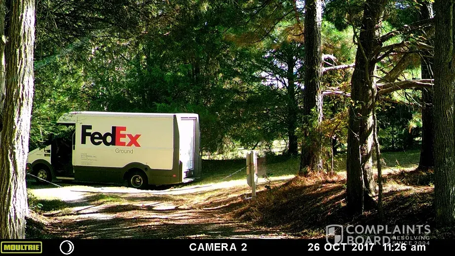 This is not the first time this has happened with FedEx. There has food products, clothing, and breakables, as well as expensive items left at gate(s) or thrown over fence. his is the furthest afield I have had to go to retrieve items that are sent via FedEx.