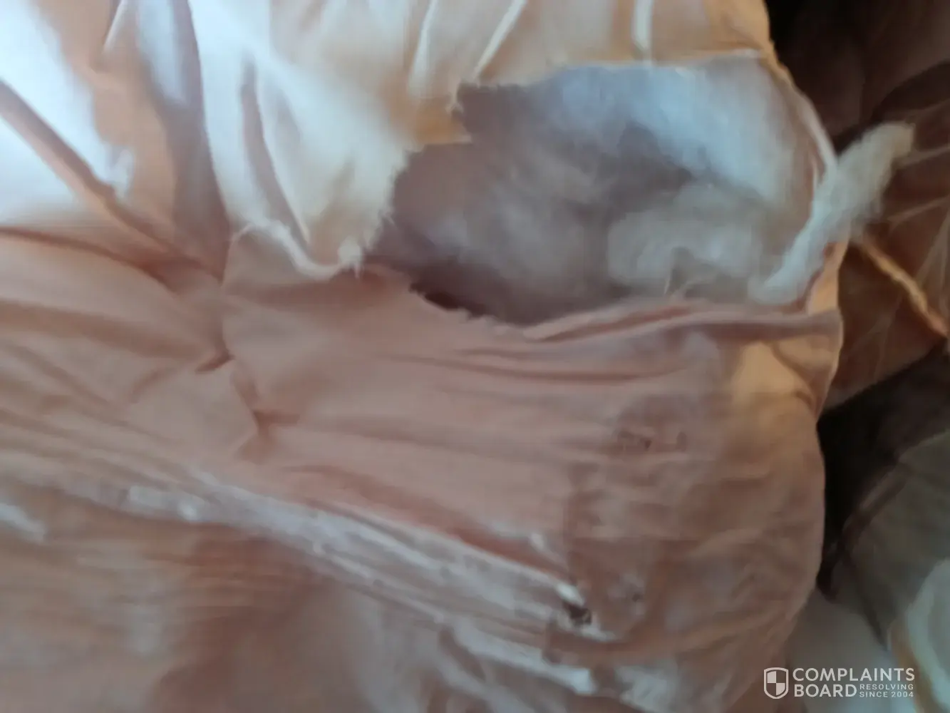I purchased a beautiful comforter in March. I was redoing my bedroom for the last time. I have severe copd so this is it fir me. I opened the comforter on August 1 and followed directions to wash it in warm water on large load and dried it on low. It MELTED and when I shook it out to fold it, the comforter ripped down the melted area. Now I am stuck with a horrible comforter because they won't do anything but give me a $30 credit. The comforter is $200! All I asked was to replace it and I would send this one to them to see it. The problem is, they are refusing to replace it. Since I don't have a whole lot of time left they will win. Don't buy from these people. They don't back up their products. Sadly, Valerie.