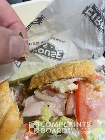 order a turkey bacon ranch with double turkey no onions and pickles on it and was charged for it i recieved a normal sub with onions no pickles and no double meat..not acceptable at all.i have ordered many times from this establishment and the past 2 times the order has been messed up,like no one is reading whats been ordered... it was ordered at 9:20 pm