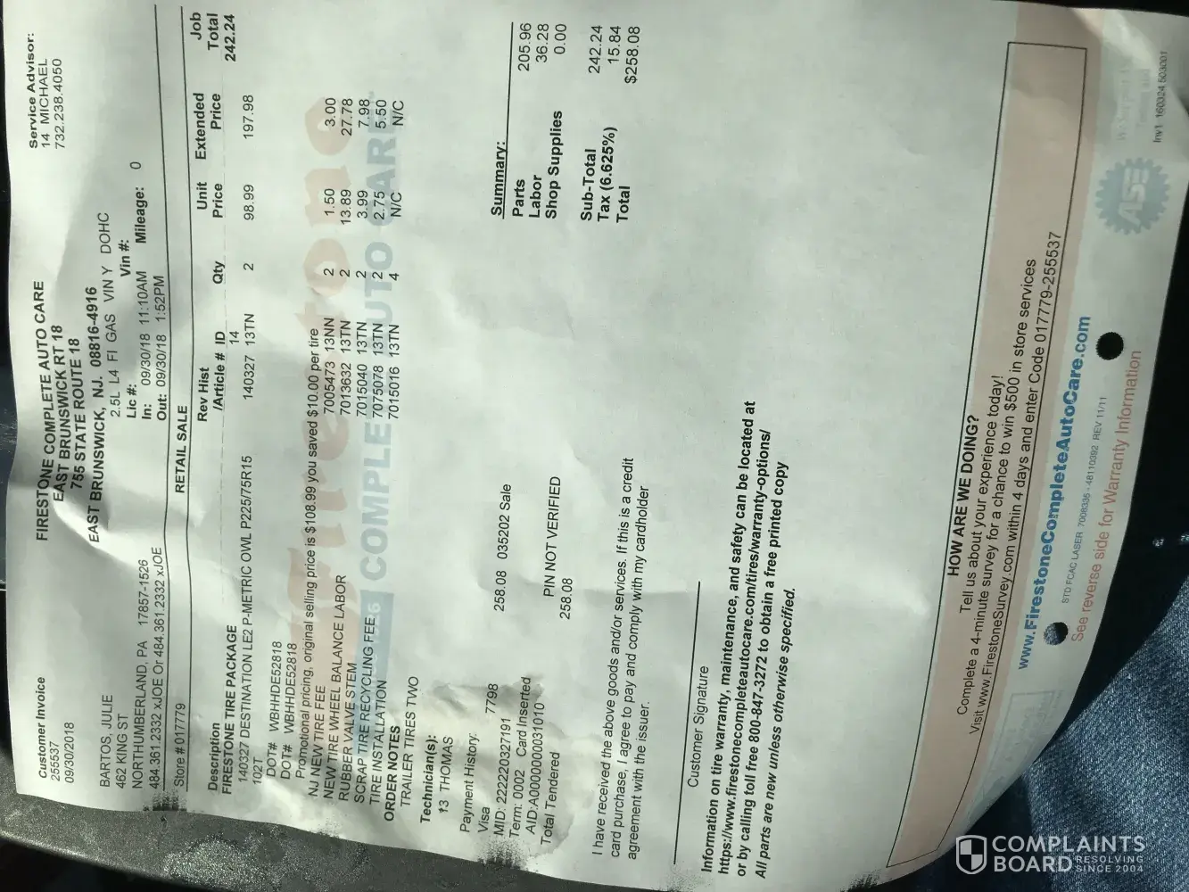 service tire sales disrespectful to customer