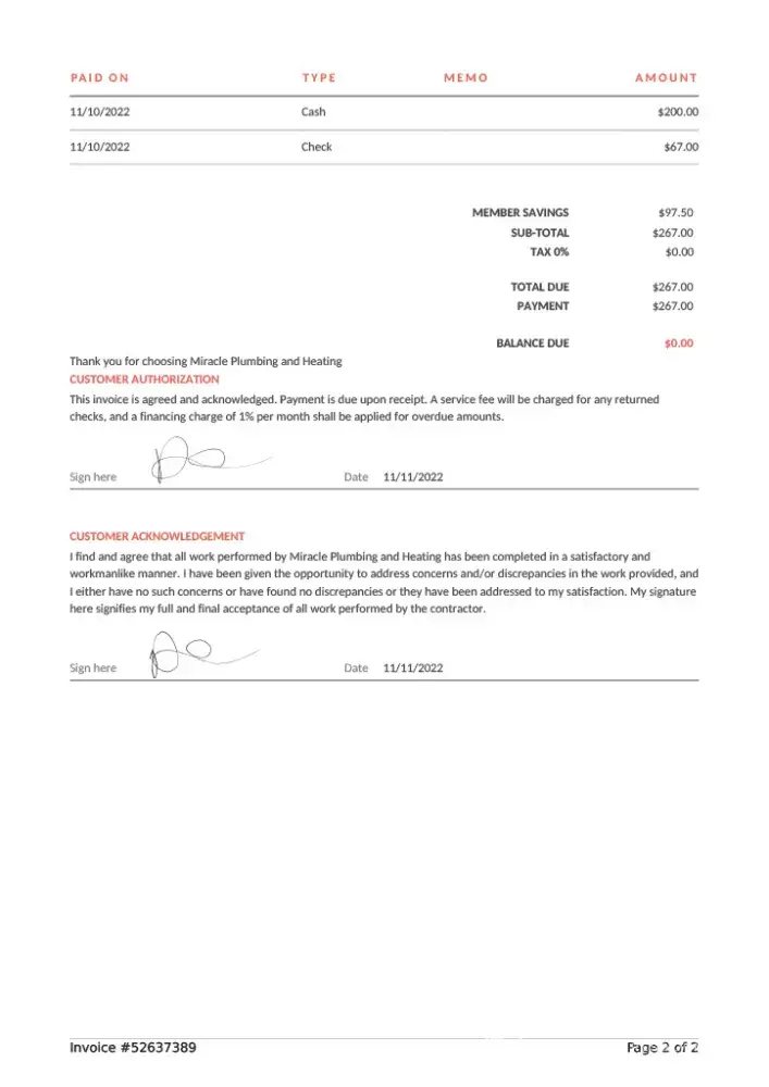 We called in two service calls. One for two drain problems, Plumber. One for a condemned wall furnace by the SoCal Gas Company.