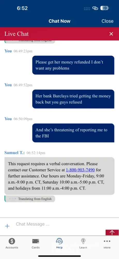 I am going to my local branch tomorrow morning to see if there is anyone there that can help as I feel like I'm running out of options.