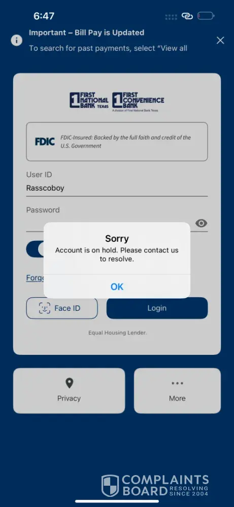 Read full complaintIs First Convenience Bank [FCB] Legit?