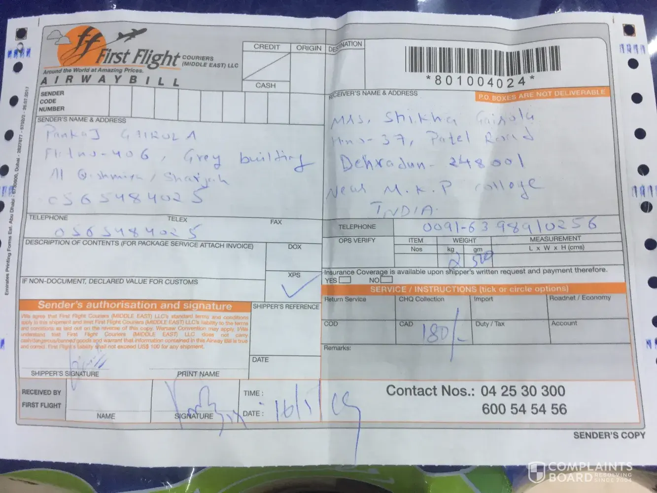 I am posting up this complaint in various online blogs for the people just to make sure that they prefer other courier service before first flight and keep this as a last option.