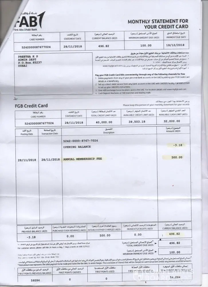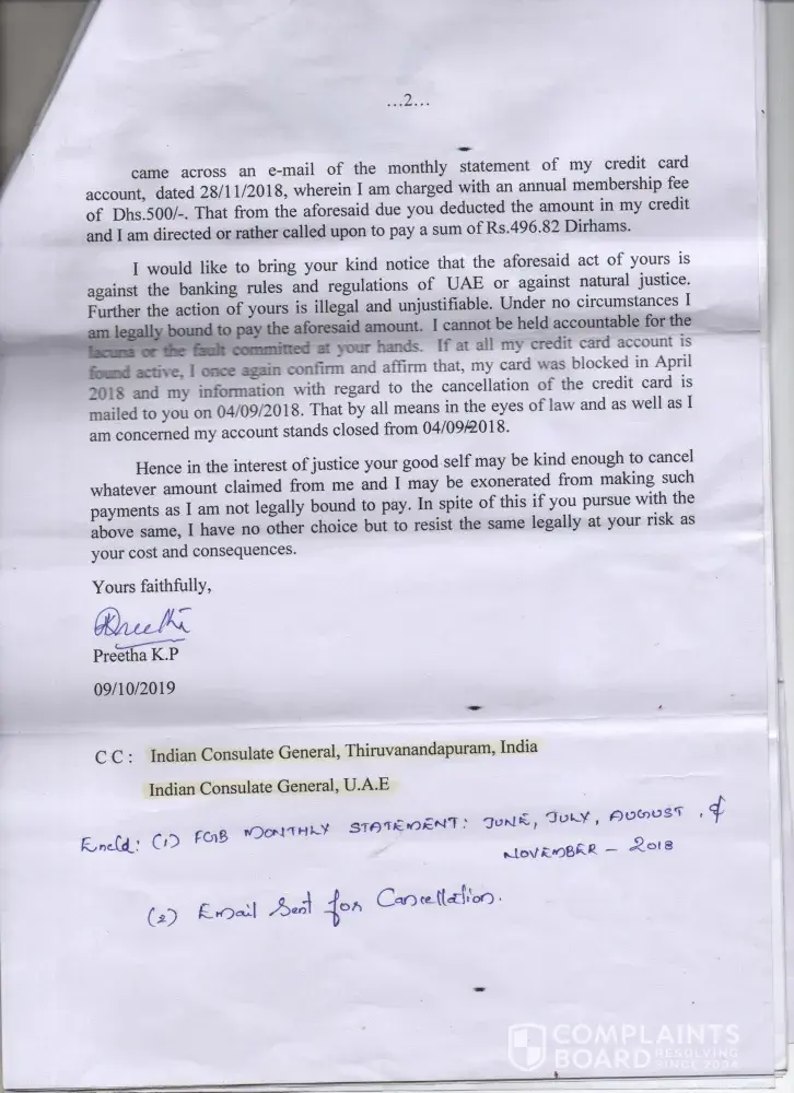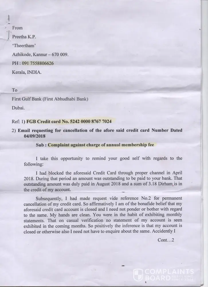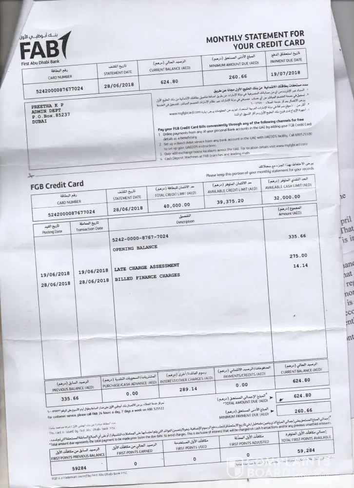 Even making all the dues with FAB, late payment fees and financial charges kept following my path and reached a stage where I have to pay all these for nothing.