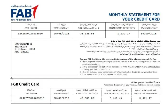 First Gulf Bank [FGB] credit card clearance letter