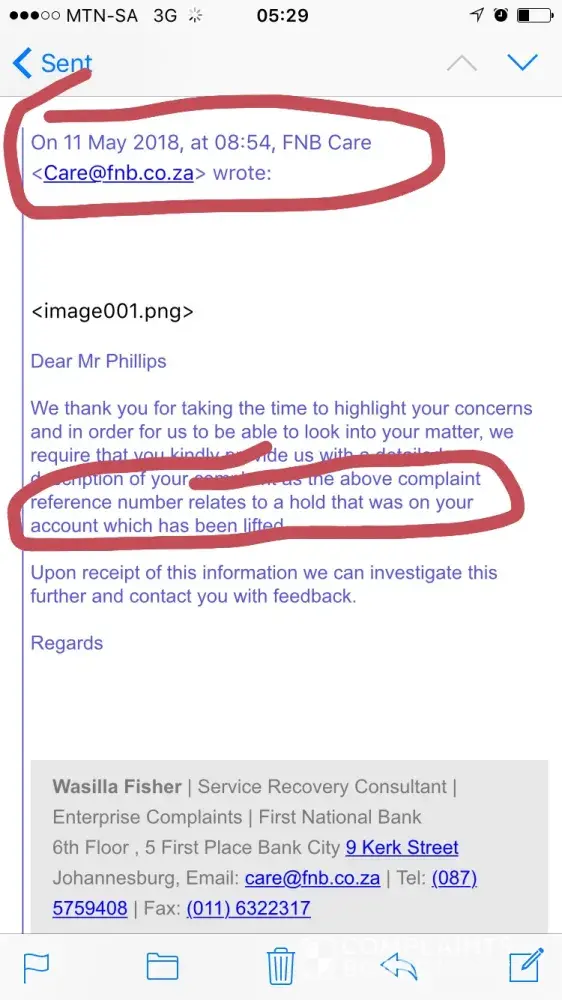 It seems has there are no notes made on the account by various consultants who contacted me, which leads to confusion with FNB bank to assist me.