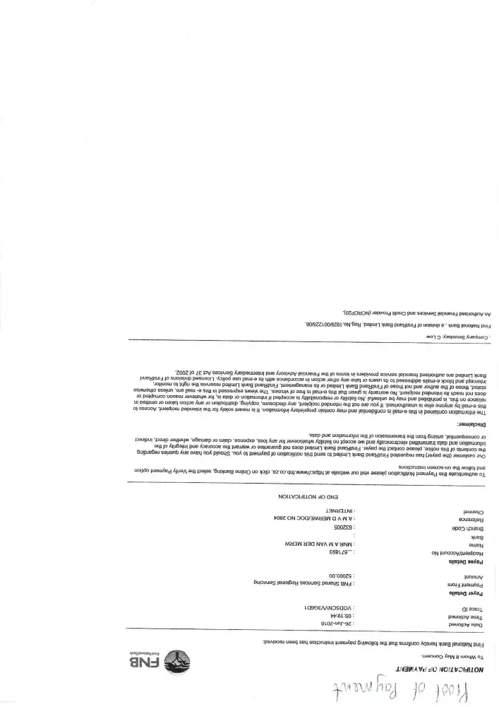 With the above explained they advised that no private accounts can be opened in 2 names. They promised that giving us a letter authorizing Steven authority on Gary's account will have the same outcome. With this all in place the 90 days process/wait started. 60 Days into the process, our UK lawyers requested some paperwork. Once they received the paperwork form FNB, they advised that the application will be declined as THE AUTHORIZATION LETTER FROM FNB WILL NOT BE APPROVED.