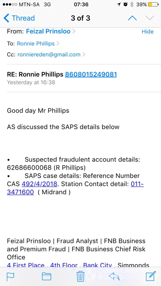 Fnb took a civil matter and involved themselves by with holding my funds that has no relation to the actual complaint! i was charged under suspected fraud account details, however i did fica and my account was verified why do i still have this problem? because they checked account status and took sides! mr prinsloo feizal in fraud assured me i will get my money back yesterday however after submitting all my doca he came back to me speaking on behalf of the complainang not me! the process was adjusted to suit complainant. I paid for goods, sold those goods to complainant in good faith now there is a problem and fnb took my money and i dont have the goods i am the victim here! you refuse to acknowlegde my requests and cry out for customer service i spent my last on airtime to call you people all you do is defend complainant and we have not even been to court! i need my finds back i need you to follow process and let this go to civil! do your job