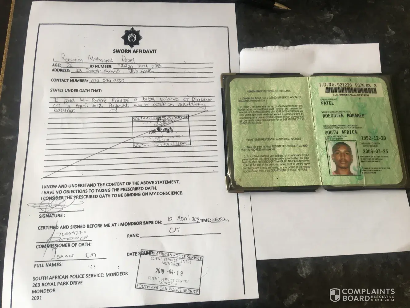 Please note that payment arrangements was made with Marcel Ferguson in December 2016, I have settled the outstanding amount of R2669.25 between January-May 2017, I have proof of receipt.