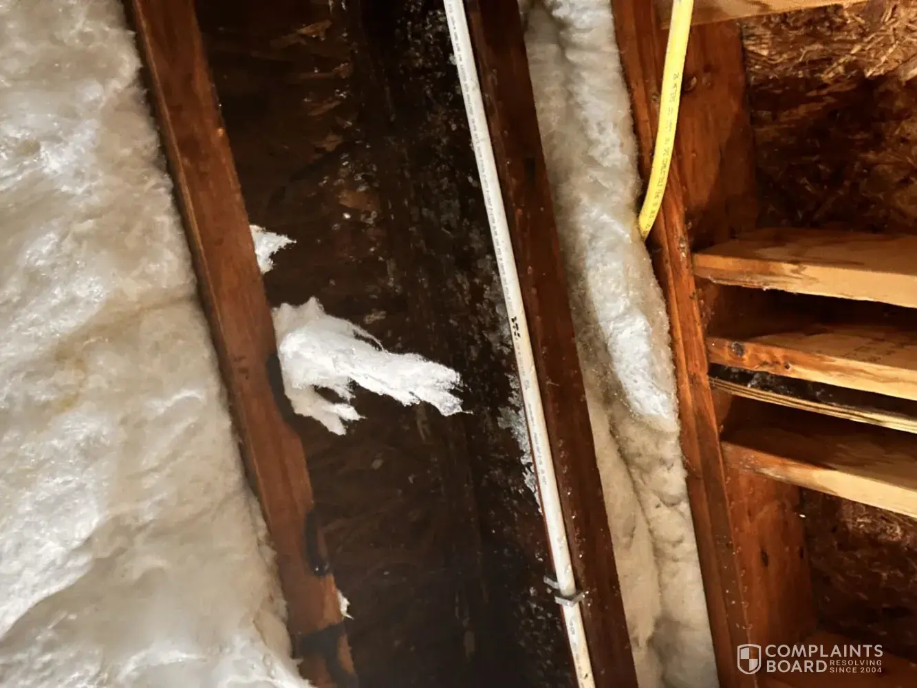 The large hole that was left behind with insulation sticking out from the wall and it took another month for some to come patch and paint it.