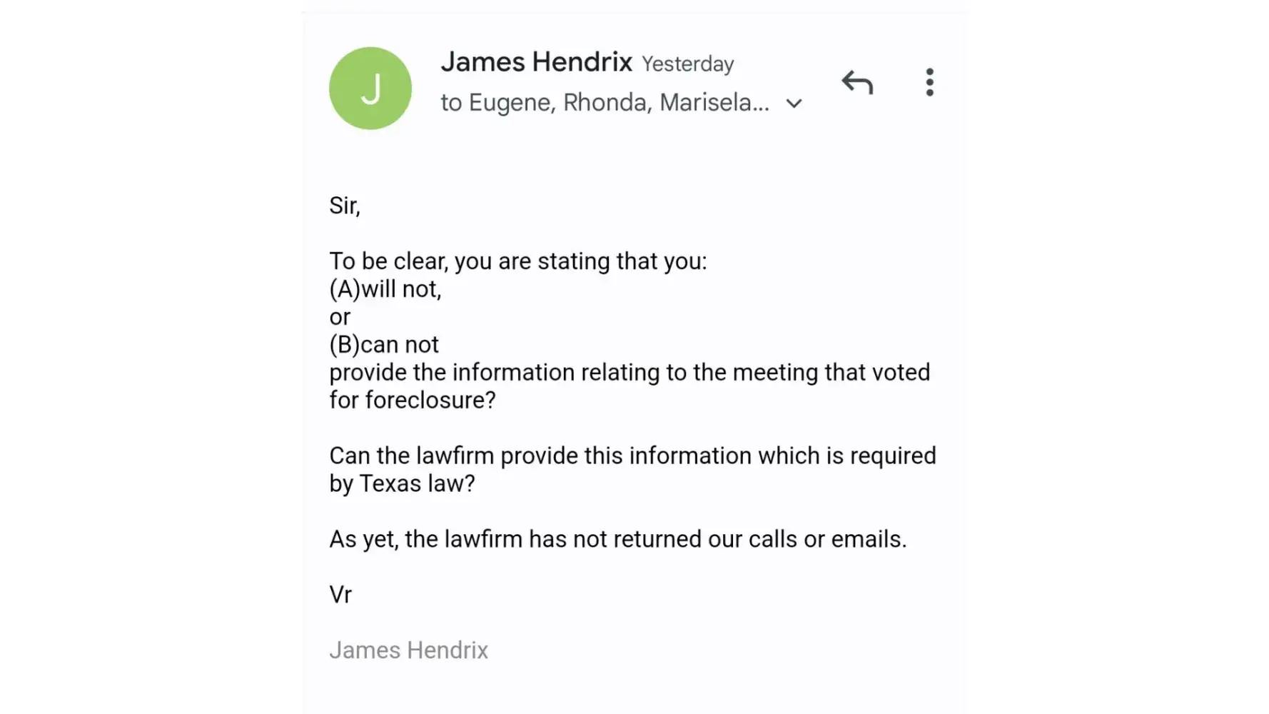 First service residential has illegally foreclosed on my property here in tx. The hoa board of my community has no knowledge of my foreclosure. According to state law the hoa board had to publically notify the community of a board meeting to vote for foreclosed. No public notice was sent, no board meeting, and no vote. I habe asked them several times to provide me wirh these documents. They are either unwilling or unable to produce them. Which is also a violation of TX law. The HOA board members have all blocke and the management company refuses to comply with our requests. I admit messed up and missed some dues. They sent my house to auction on July 5th a company bought it and is now trying to evict me.