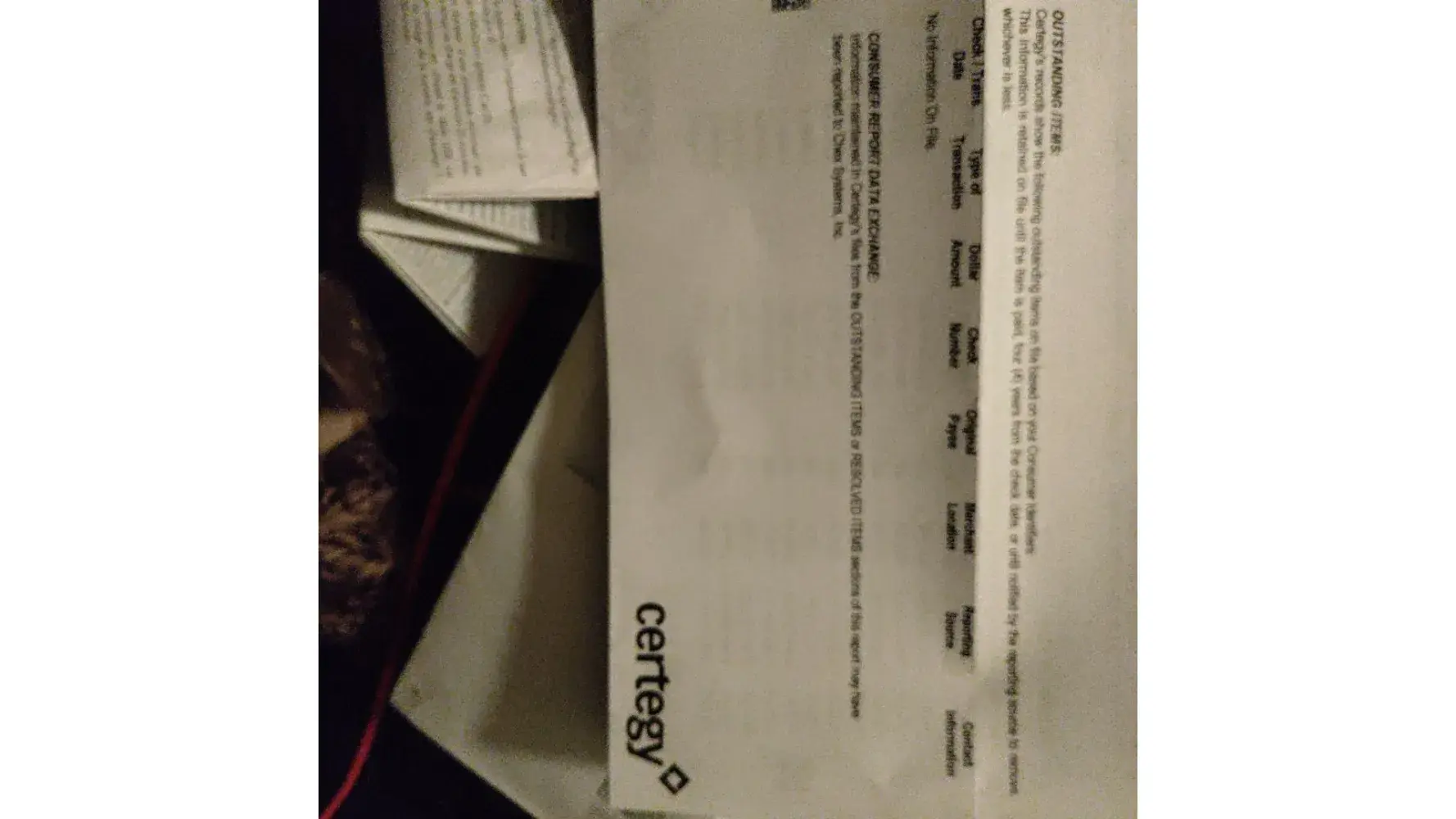 What can't cash my check because certegy days so. Without any explain. Just to twist my credit report. That is not resolve to resolve my getting my money. Whatever "algorithm" this company, that had already been sued by ftc. Uses is redundant to the fact I can't cash a check. I need my name clear in order to receive money that is handed to me in the form of a check. Certegy needs to lift the denial on my check cashing abilities immediately