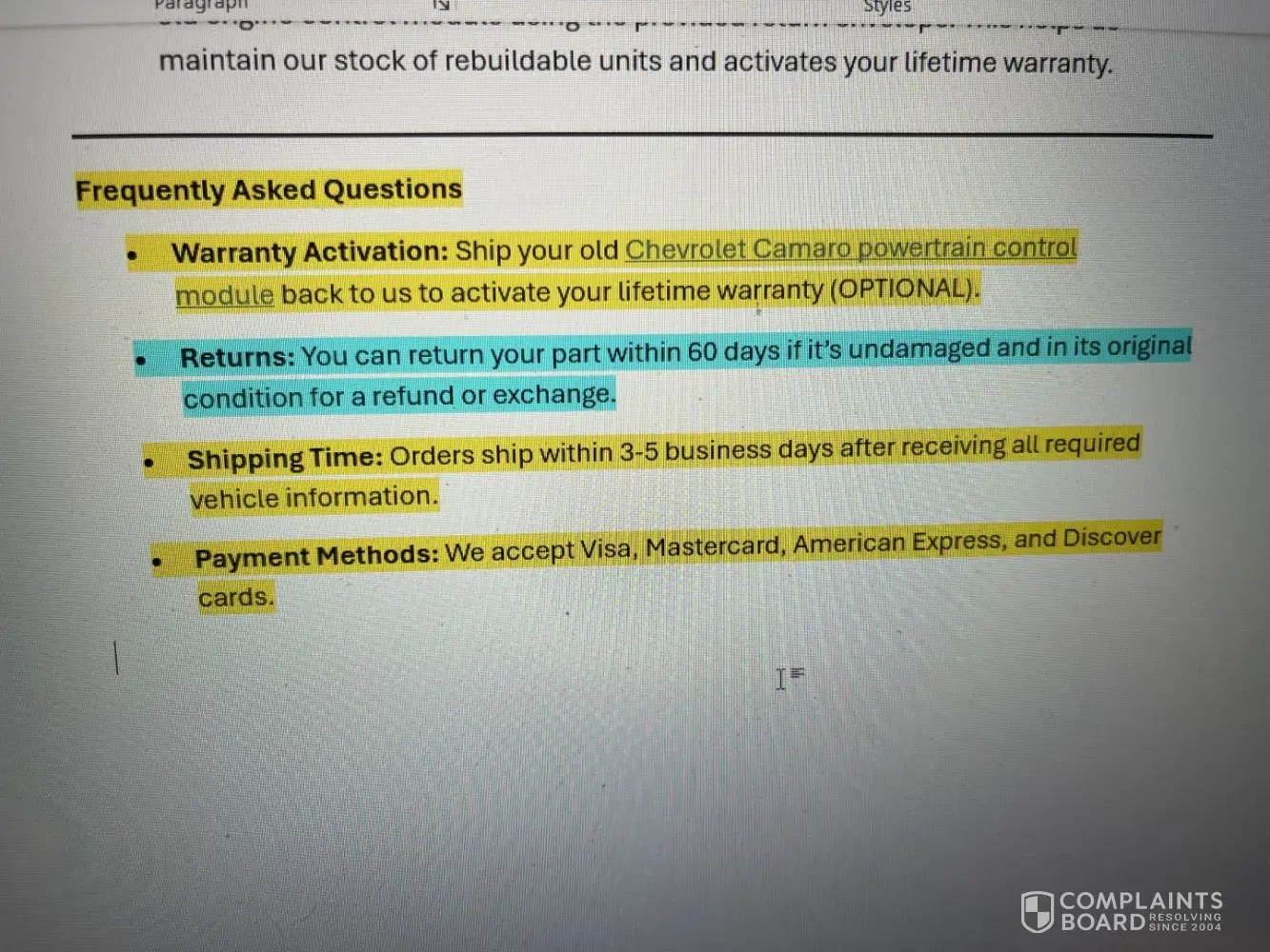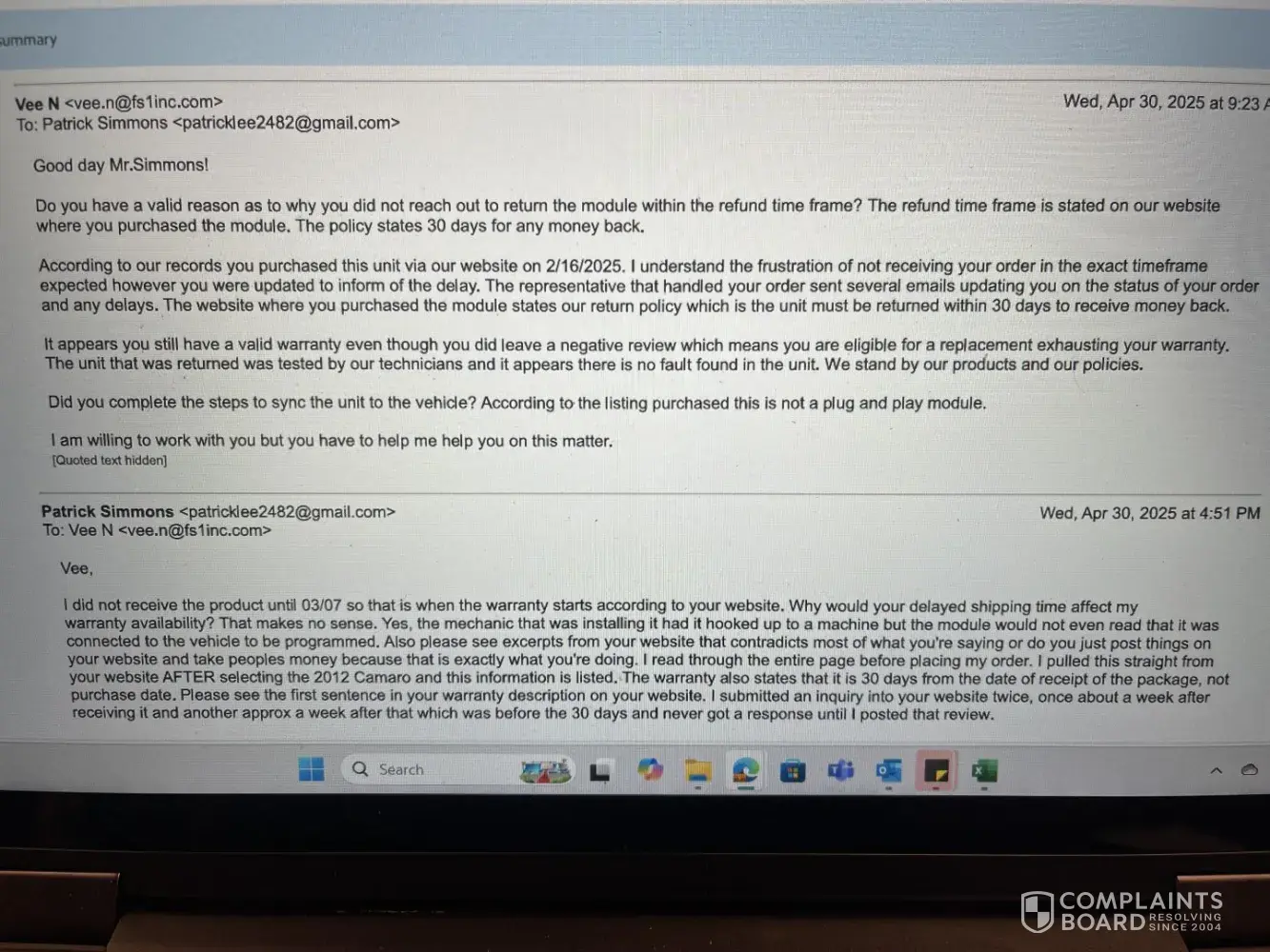 When I approached fs1 again to return the ecu, things took a turn for the worse. They refused to issue a refund, citing their 30-day refund policy, even though I had reported the faulty item to them and spent over two weeks of that time in transit for an RMA. The person I chatted with mentioned that they were the only supervisor who could help, but they were not willing to do anything about it. All they offered was another RMA, even though after two failures from them, I paid for the dealership to do everything for me. It was clear that I didn’t need another bad ecu from them, and at this point, I just needed my money back.