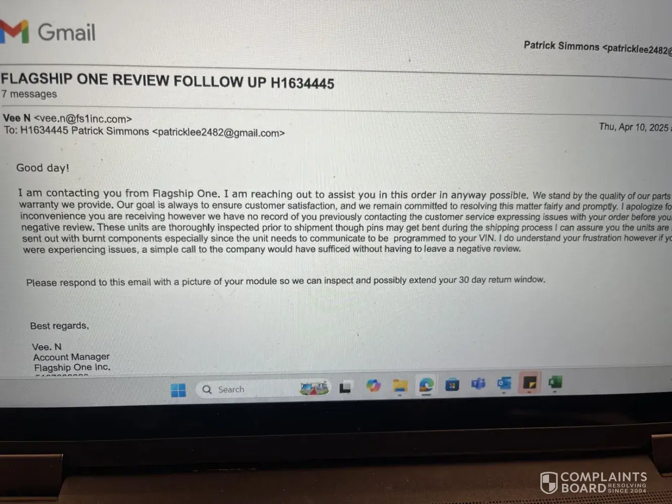Flagship One Inc Review: Terrible Customer Service and Incorrectly Programmed Part