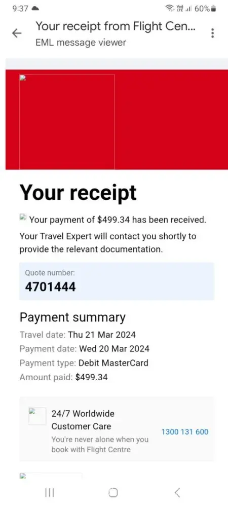 This is left bad feelings towards Flight Centre and really I don't think I want to use them again..