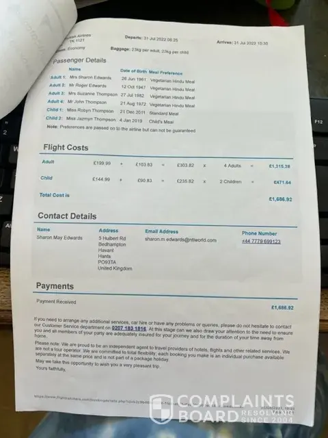 Coming nearer to the time in November they emailed me saying that the flight date was cancelled by airline and changed therefore for me to bring back the return date to an earlier date I had to pay £350, I was vulnerable and I had payed it.