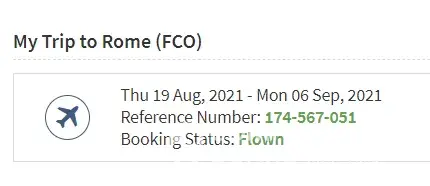 Now on the FlightHub website our booking is marked as "Flown" with information about our "Flight":