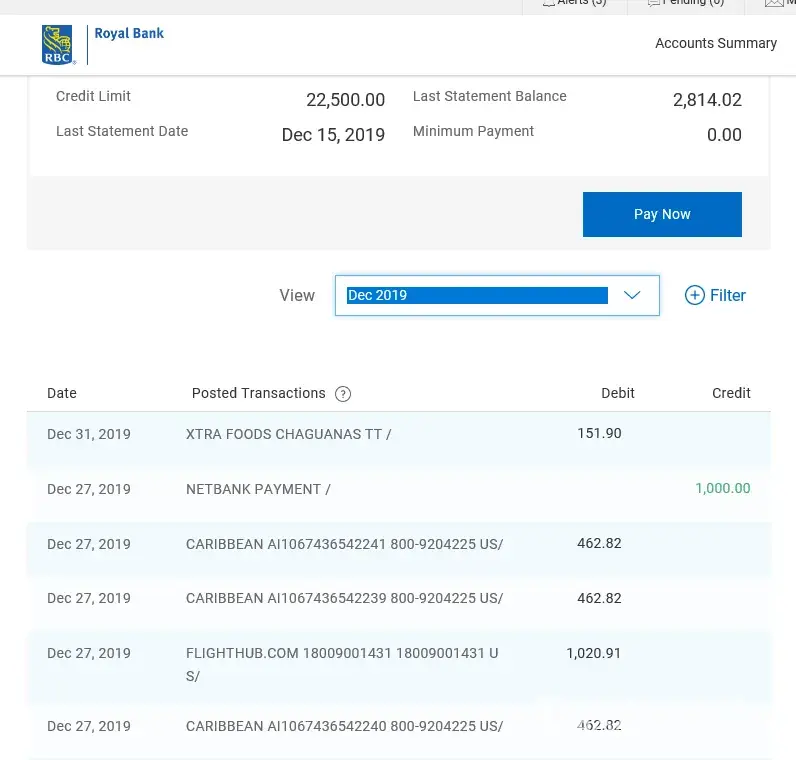 On December 27th I booked three tickets to travel to Tobago on February 22nd to 24th, for Rhonnel Forde, Adrian Fernandes and my self, via your web site, in addition to being debited the sum of $1, 020.91 from the Flight Hub.com my card was also charged three times in the amount of $467.82 by Caribbean Airlines
