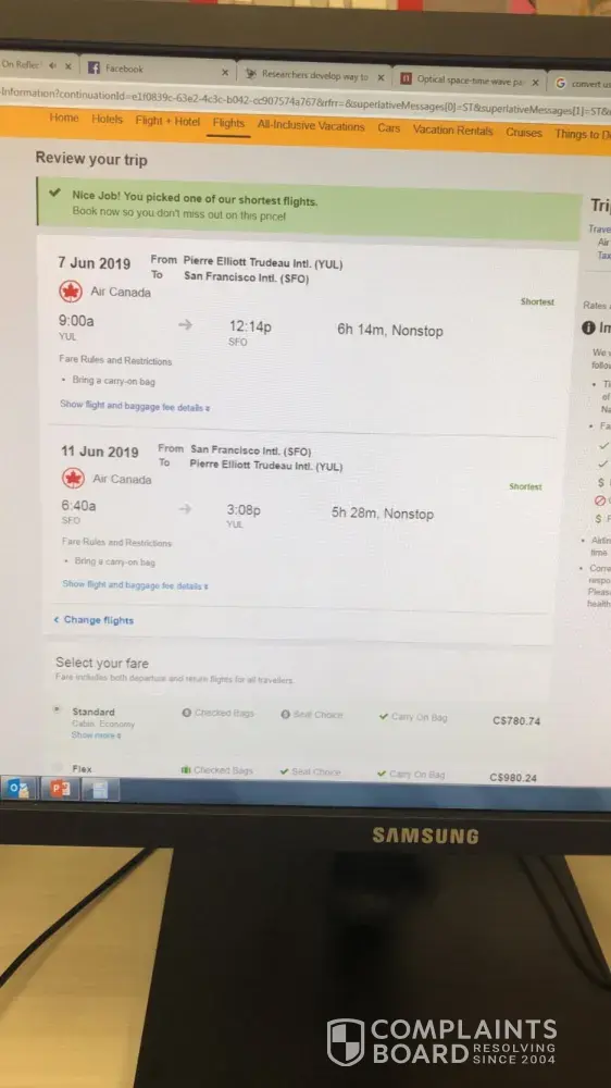 I tried with an agent of Air Canada who informed me that all their flights were overbooked the same day and even for the coming 3 days. There was important big conferences in San Francisco, as an example, the one I attended had 15, 000 attendees. I panicked, especially that I had to be in Montreal that same day for an important event at my kid's school at 18h. I could not do my searches easily on my phone and have asked immediately my husband to find me any flight to bring me back home. He used your service again (since we are your customers) and found only one that I have asked him to book directly (flight [protected]). This was the only option I had, I stayed at the airport till 4 pm and had to go Vancouver, Calgary then Montreal, arrived on June 12 at 7 am to Montreal (more than 24 hrs between the time I got to airport and got home). I have missed on top my kid's school end of year show and a day of work on the 12th of June.