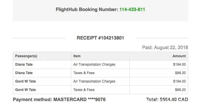 FlightHub Booking Number: [protected]
