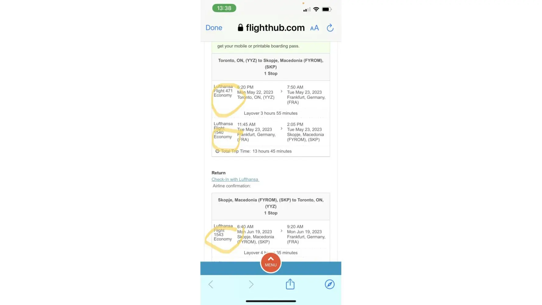 FlightHub Booking Reference [protected]. Lufthansa airline confirmation: 3DIBA2.