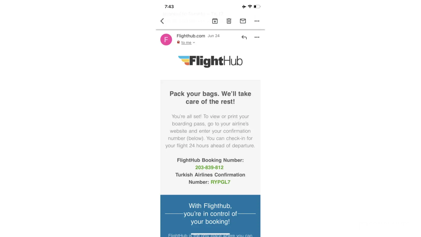 On July 7 the email from Flighthub confirmed flight Prague-Toronto only !