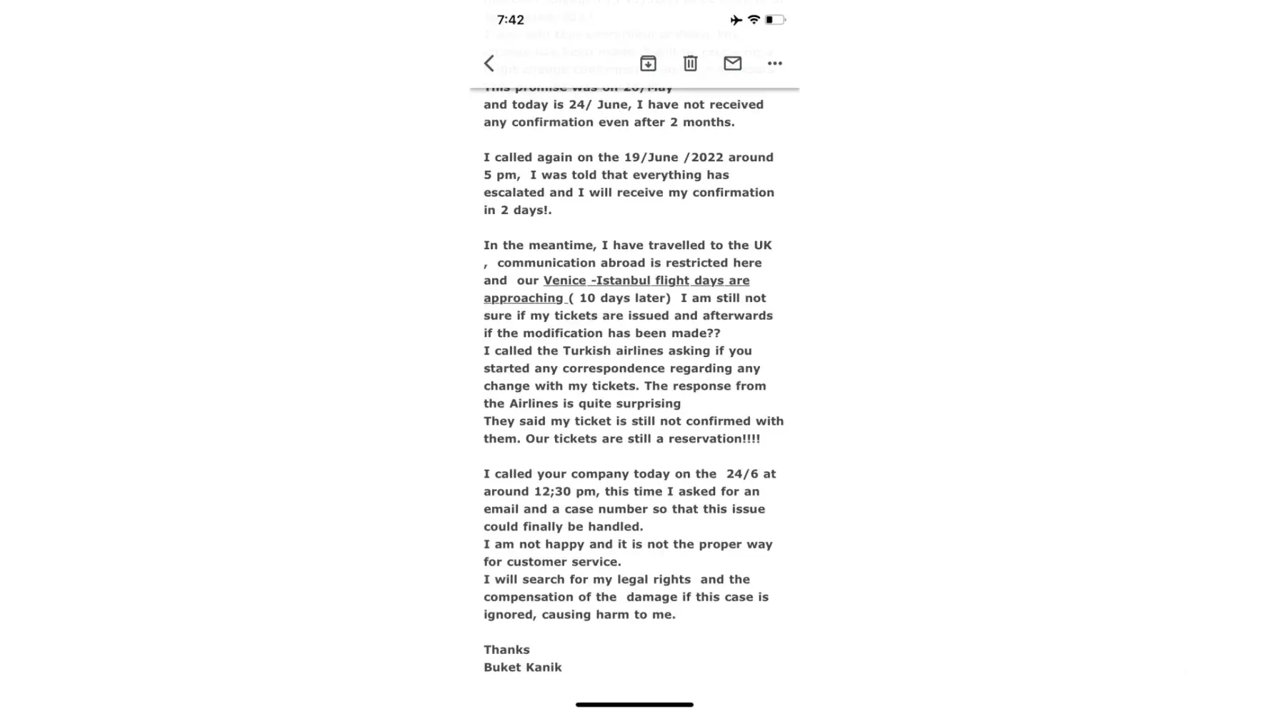 Desired outcome: I would appreciate a respond and I want my tickets issued asap!