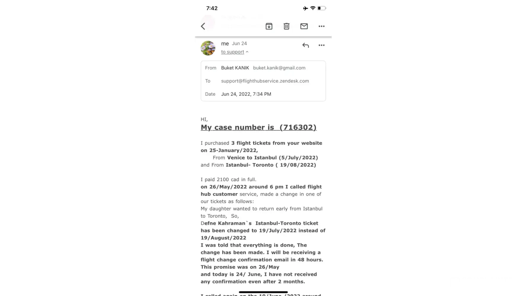 5. A manager from Flighthub this morning informed me that she would escalate my case, follow up and apply for a credit. She gave case# 740672.