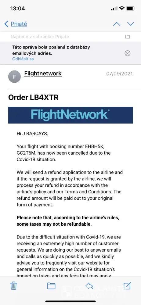 After the Canada Airline company cancelled my flight in March 2020, I submitted a refund request to FlightNetwork.