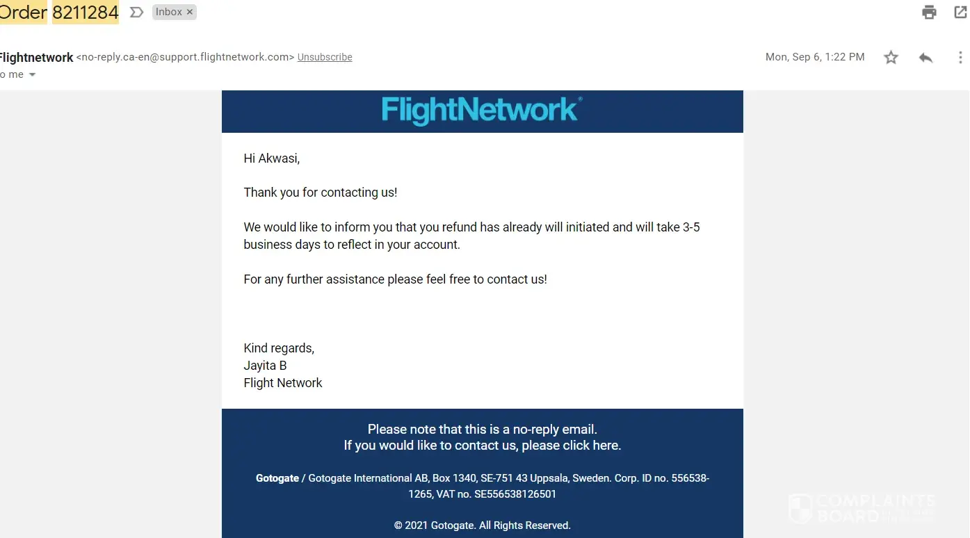 I want to complaint as I didn't receive my refund and spoke to airline beginning September and they clearly said they process straight away but flight network keep lying about the refund process taking too long. The service is very poor from advisors and. Nothing is sorted out. If it not resolved asap I will reported to police as fraud from the company and I will take it to further investigation.