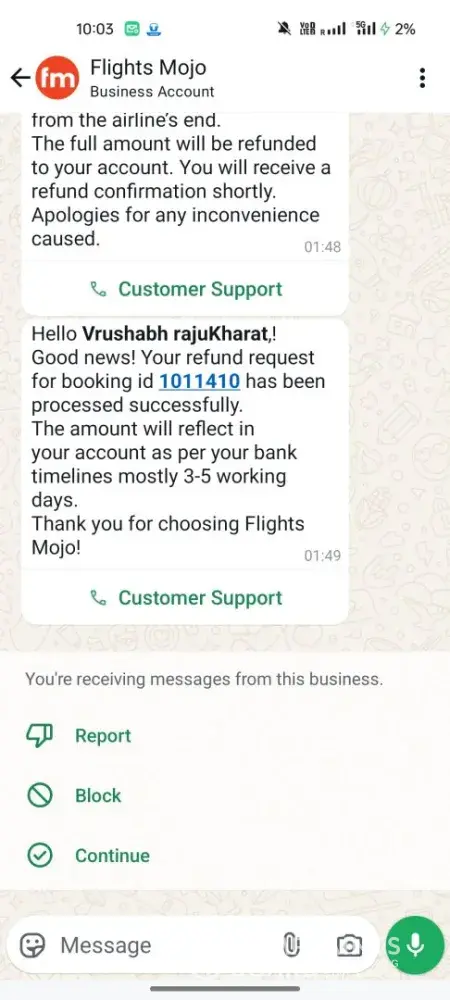 There is absolutely no reply on the complain and they have been buying time by making excuses about coordinating with the airlines. Checked with the airlines and they said they have already processed the same and the refund will be done by the booking agency, which is Flights Mojo.
